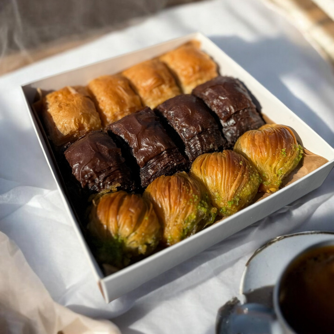 Наповнення:Пахлава з фісташкою "Мідії" Пахлава з фісташкою "Хавуч" Пахлава шоколадна з грецьким го..