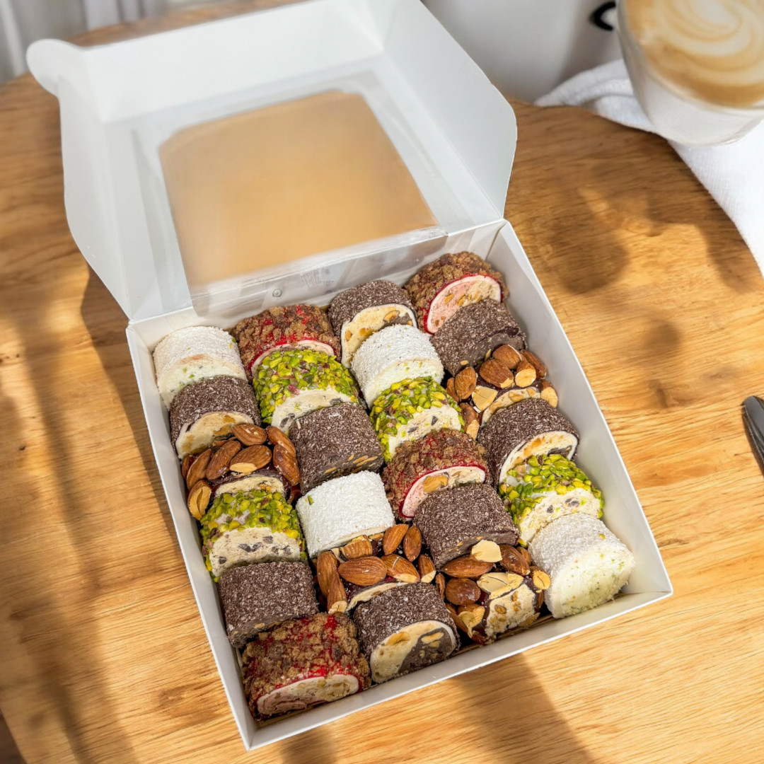 Наповнення: Усі смаки турецького рахат лукуму (в асортименті) Пахлава з фісташкою "Мідії" ..