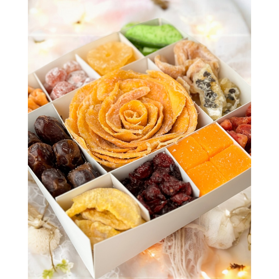 Наповнення: Сушена папаяСешена диняДжекфрутКумкватМаракуяГуаваСушене мангоАнанасПомелоВишняФрутел..